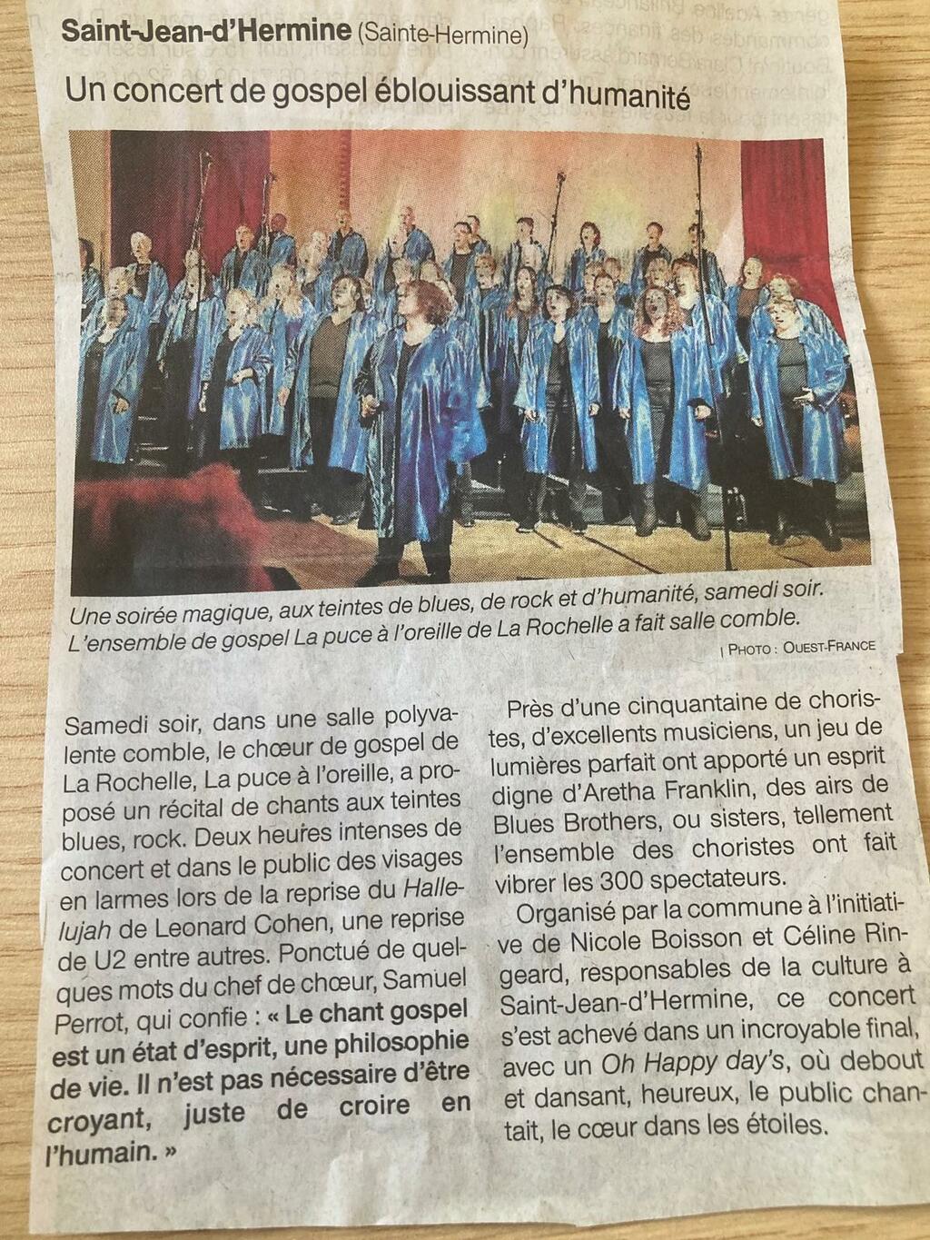 Ressenti du concert donné à Saint-Jean-d'Hermine le 17 mai 2025 par Le Choeur Gospel de La Rochelle.