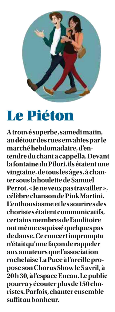 Annonce du Chorus Show du 05 avril 2025. Flashmob des chorales de La Puce à l'Oreille.